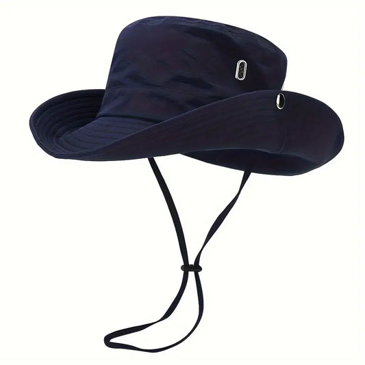Chapeau de soleil homme noir – Bob safari avec cordon réglable pour randonnée et plein air