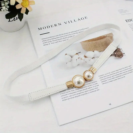 Ceinture élastique femme marron avec perles – Accessoire chic et ajustable pour robe et pantalon