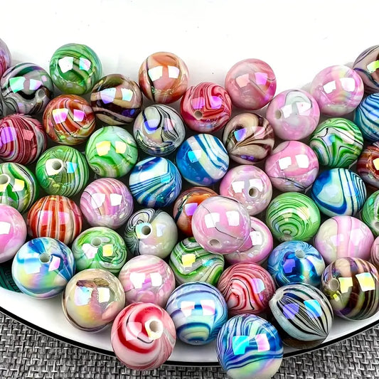Perles Rondes Multicolores Effet Marbré – Perles Acryliques Brillantes pour Bijoux Fantaisie DIY