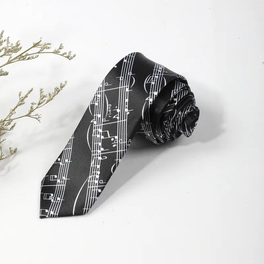 Cravate noire homme à motifs notes de musique roses – Accessoire élégant pour musiciens et soirées habillées