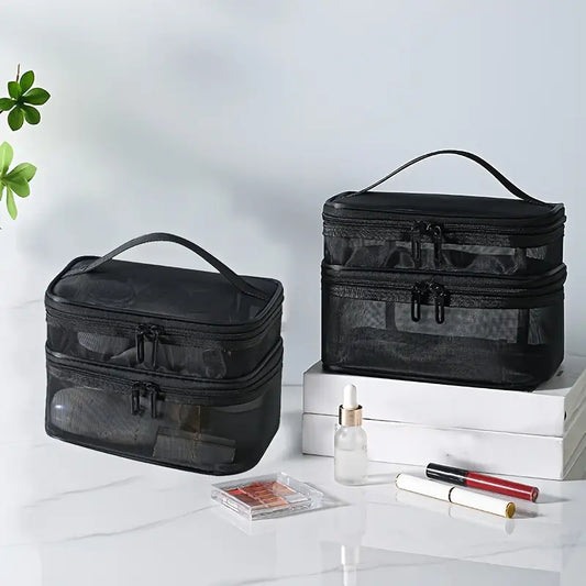 Trousse de Maquillage Transparente à Double Compartiment – Pochette de Rangement Voyage Étanche et Légère