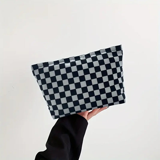 Trousse de toilette imperméable à motifs damier Grande capacité pour voyage et randonnée