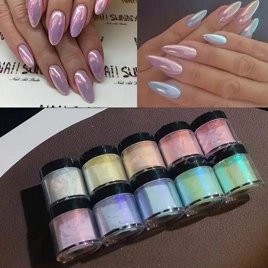 Vernis en Poudre Effet Miroir Nacré – 10 Teintes Chromées Pastel pour Ongles Brillants