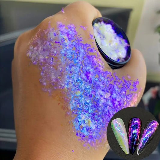 Vernis en Poudre Flocons Holographiques – Effet Nacré Multicolore pour Nail Art Féérique