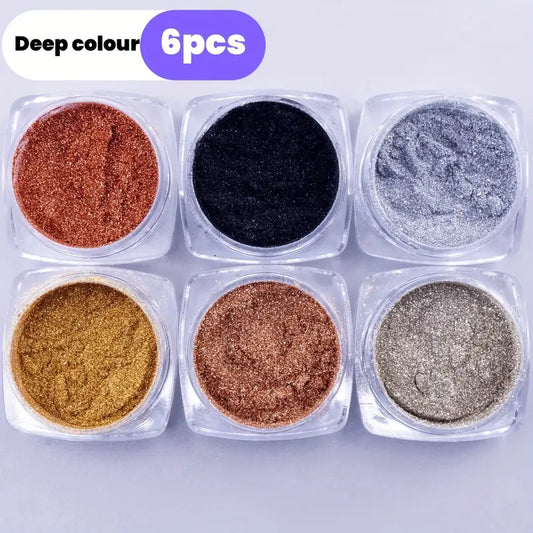 Kit Vernis en Poudre Effet Chrome Sirène – 6 Couleurs Pastel Irisées + Applicateurs