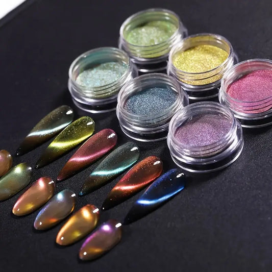 Vernis en Poudre Effet Œil de Chat 3D – Couleurs Métalliques Magnétiques pour Nail Art Intense