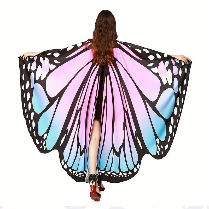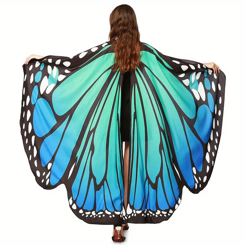 Déployez vos ailes de papillon et laissez la magie opérer. Cette cape/châle au motif réaliste épouse les épaules et ondule à chaque pas pour un effet scénique en soirée, carnaval, cosplay, spectacle de danse ou séance photo. Son voile léger et fluide, à l’impression haute définition, capte la lumière et sublimes vos mouvements instantanément.