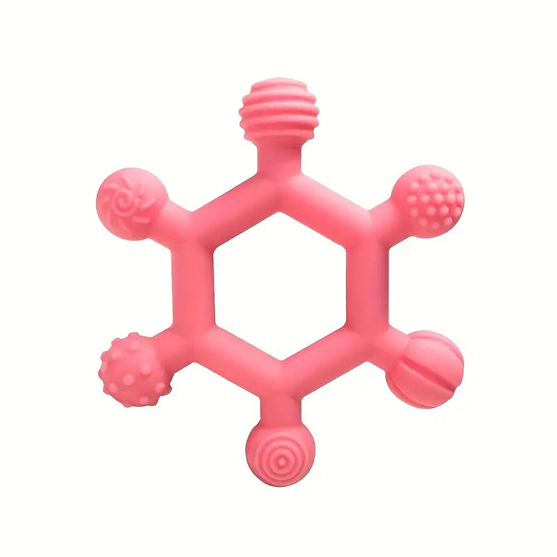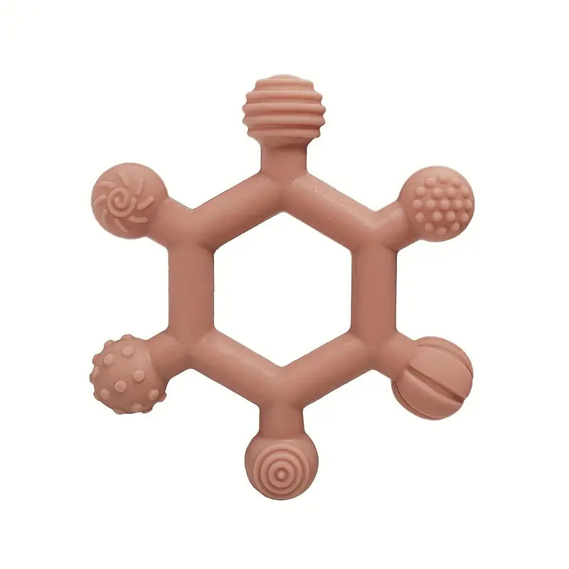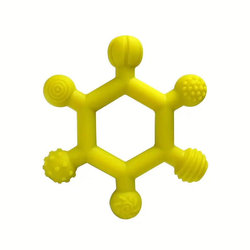 Offrez à votre enfant un véritable allié lors des poussées dentaires. Cet anneau de dentition en silicone alimentaire propose 6 embouts aux reliefs complémentaires (rainures, spirales, picots, stries…) pour un massage précis des gencives. Sa forme hexagonale, légère et souple, favorise la préhension et transforme l’inconfort en exploration ludique. Les surfaces multi‑textures stimulent l’exploration tactile, la motricité fine et la coordination œil‑main.
