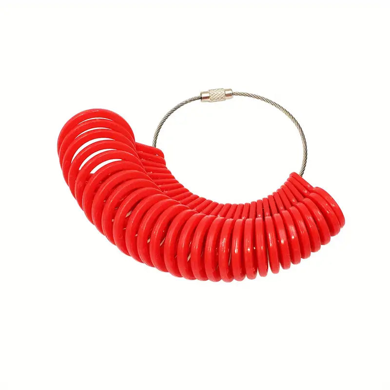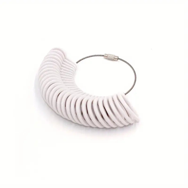 Optimisez vos créations et vos ventes avec des anneaux de mesure conçus pour un essayage réaliste. Reliés par un câble en acier inoxydable avec fermoir à vis, ils se sélectionnent et se retirent en un geste. Bords arrondis, plastique durable et surface lisse: tout est pensé pour un contact confortable et une lecture sûre, que vous soyez particulier, créateur ou outil bijoutier en atelier.