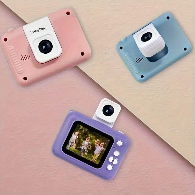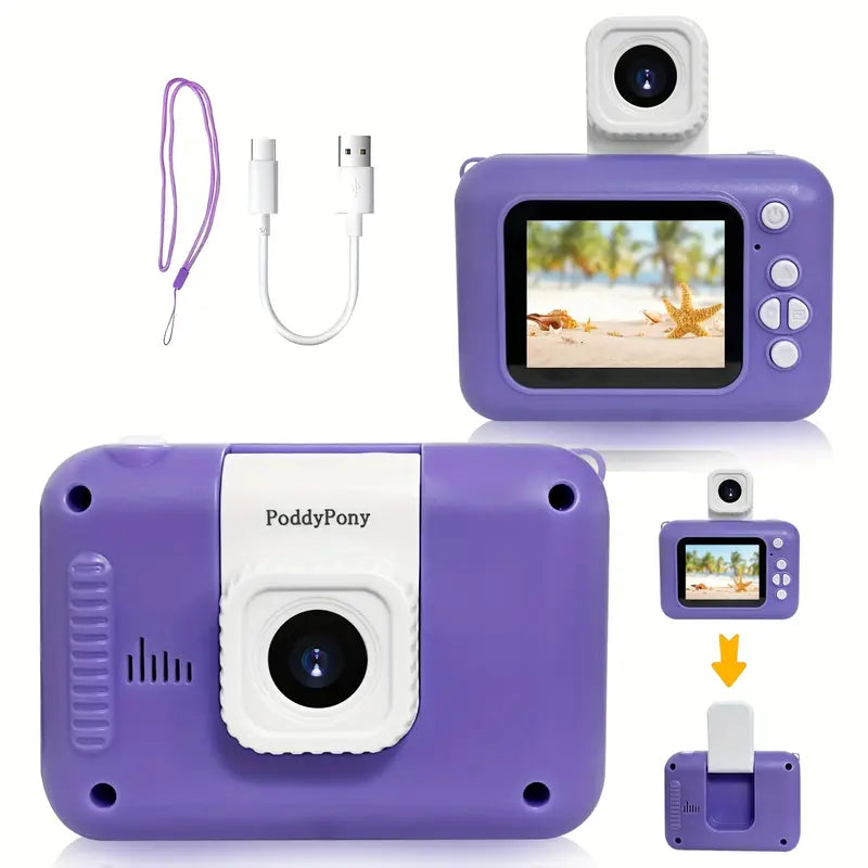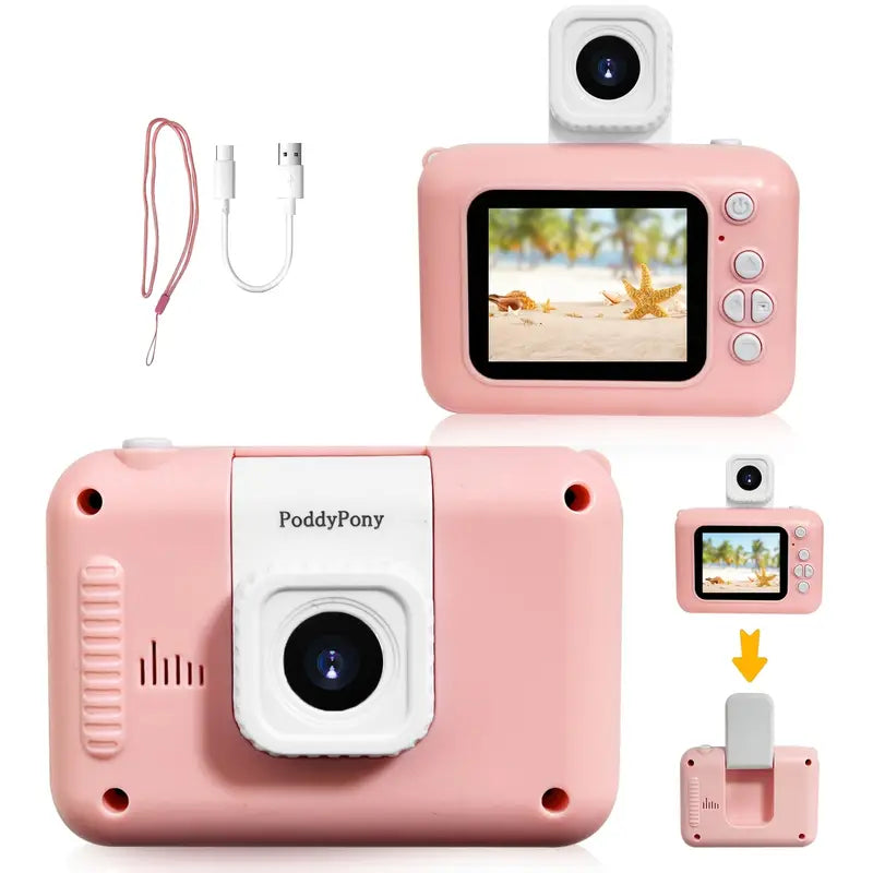 Appareil Photo Numérique pour Enfants PoddyPony – Caméra HD Rechargeable avec Écran et Objectif Amovible