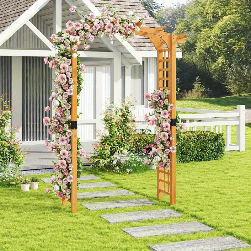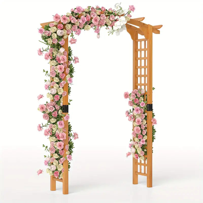 Idéale pour rosiers, clématites et guirlandes florales, elle devient une véritable arche de mariage ou un passage d’accueil. Personnalisez-la avec fleurs fraîches ou artificielles, rubans et guirlandes lumineuses.