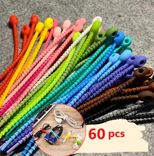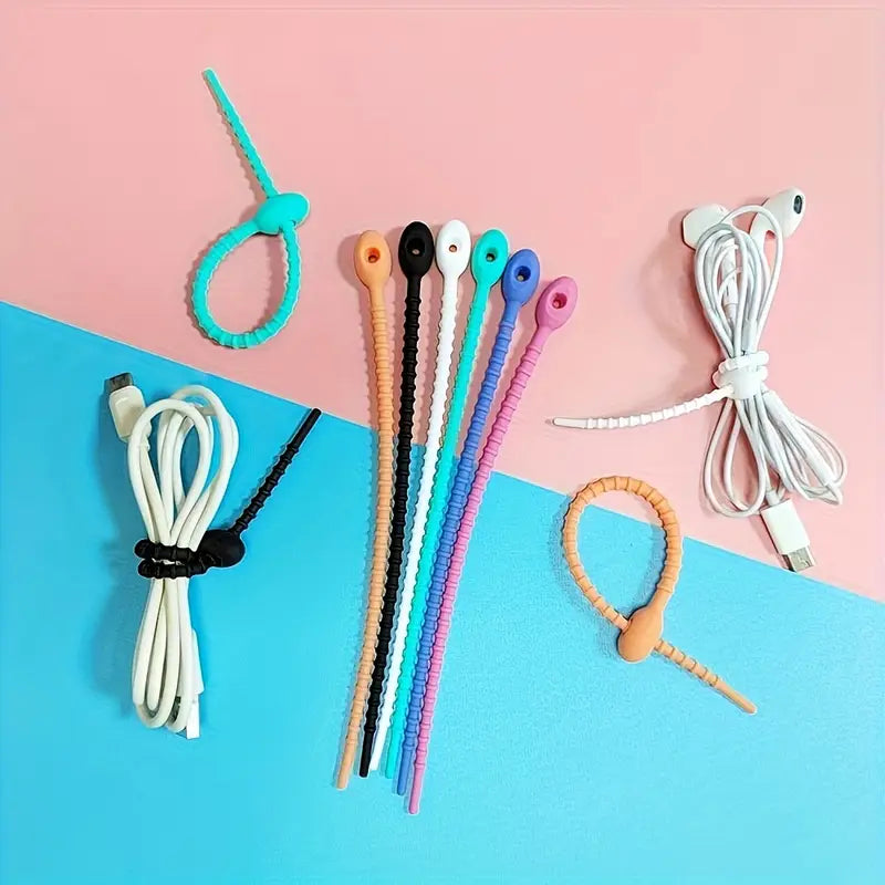 Attaches Câbles Réutilisables en Silicone – Organiseurs Colorés pour Câbles USB, Chargeurs et Écouteurs