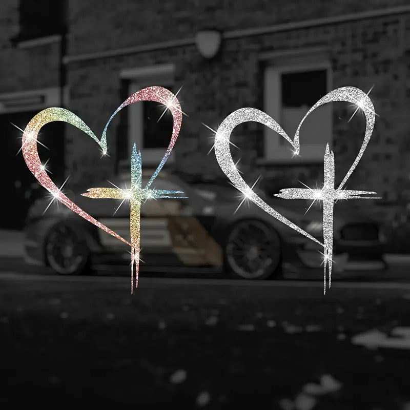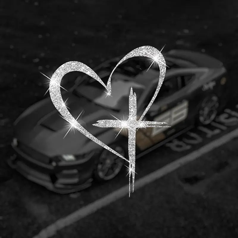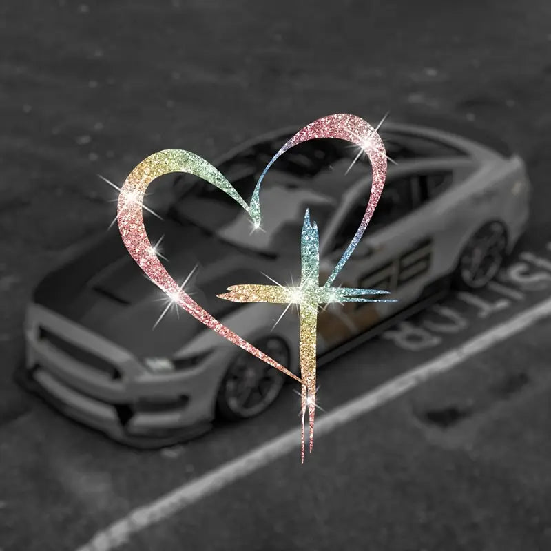 Sticker voiture pailleté – Cœur brillant, amour et élégance