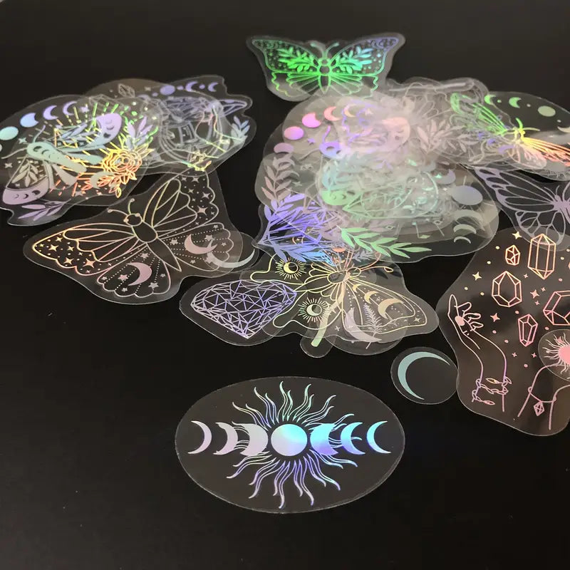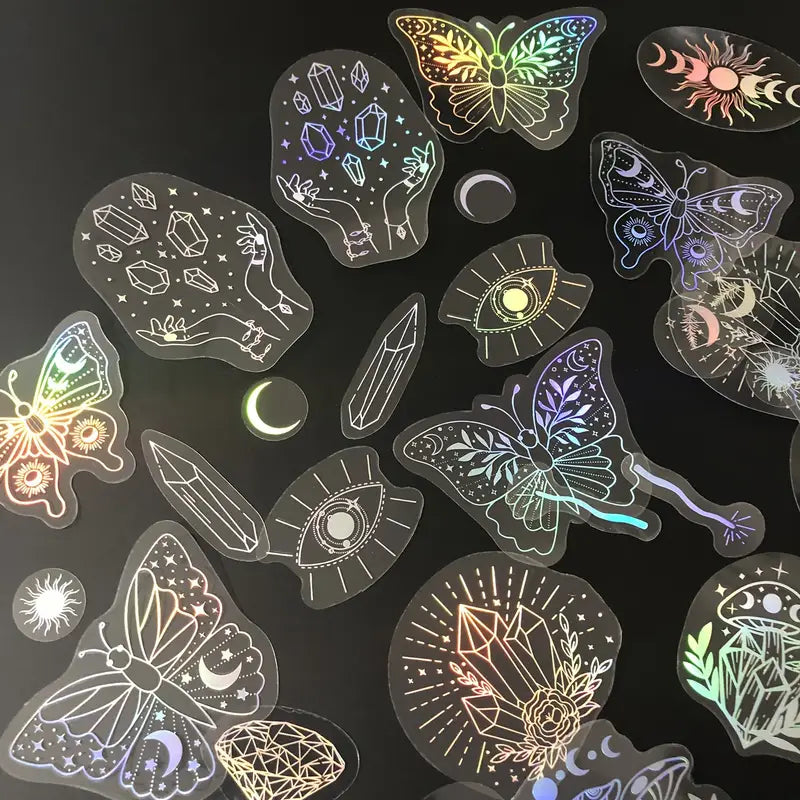 Autocollants Holographiques Papillon et Motifs Mystiques – Stickers Brillants pour Ordinateur Portable, Tablette et DIY