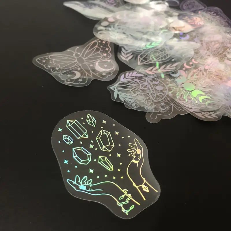 Stickers holographiques mystiques pour déco laptop et DIY
