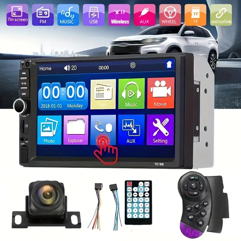 Conduite plus sûre grâce aux appels mains libres et aux grandes icônes, confort quotidien via la télécommande, molette et écran tactile, divertissement illimité avec Bluetooth, USB, carte mémoire, FM et AUX. Installation simplifiée avec connectique standard (vérifiez la compatibilité de votre véhicule). Certaines fonctions peuvent varier selon la version (ex. entrée caméra de recul) : consultez la fiche technique.