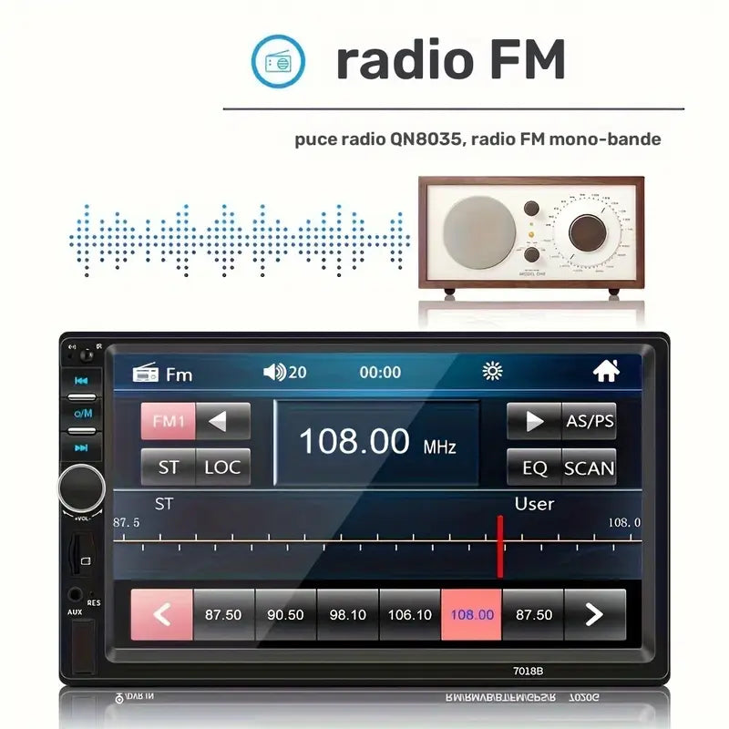Autoradio voiture écran tactile HD avec Bluetooth et télécommande