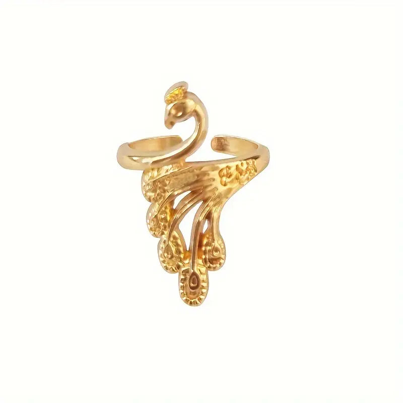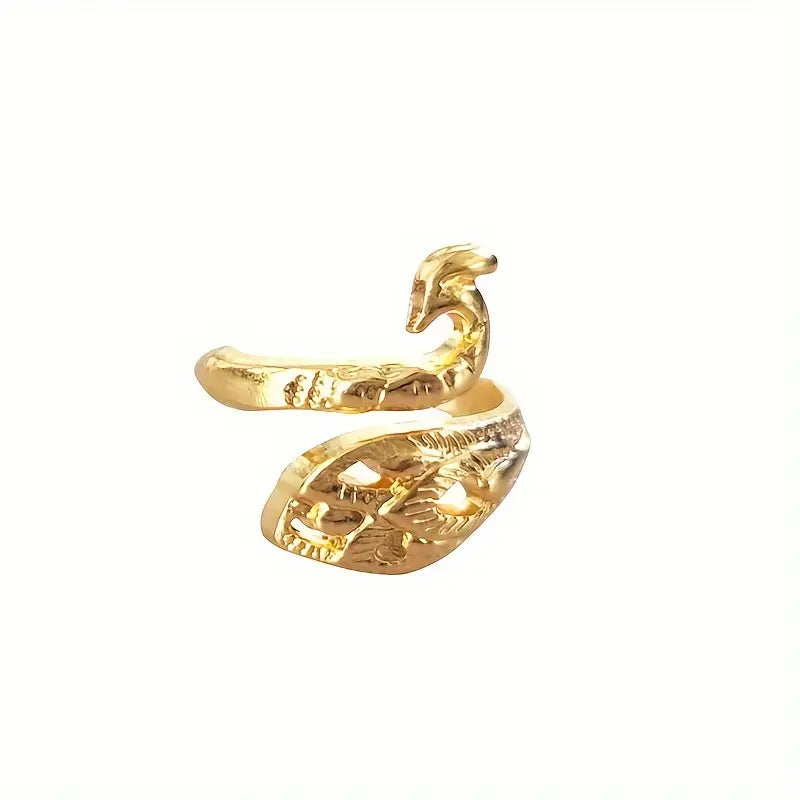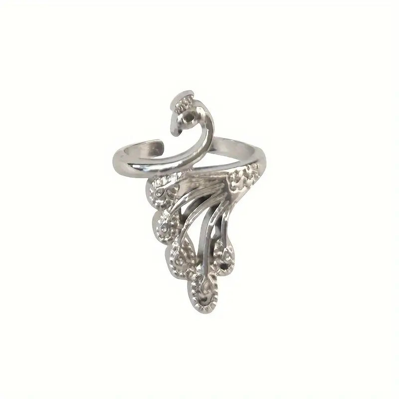Élevez votre allure avec cette bague statement au design inspiré du bague paon, finement ciselée et ajourée. Son anneau ouvert s’adapte en douceur, offrant un confort durable tout au long de la journée. La silhouette élancée et les plumes sculptées allongent visuellement les doigts, tout en apportant une touche de caractère à vos tenues, du quotidien aux moments créatifs.
