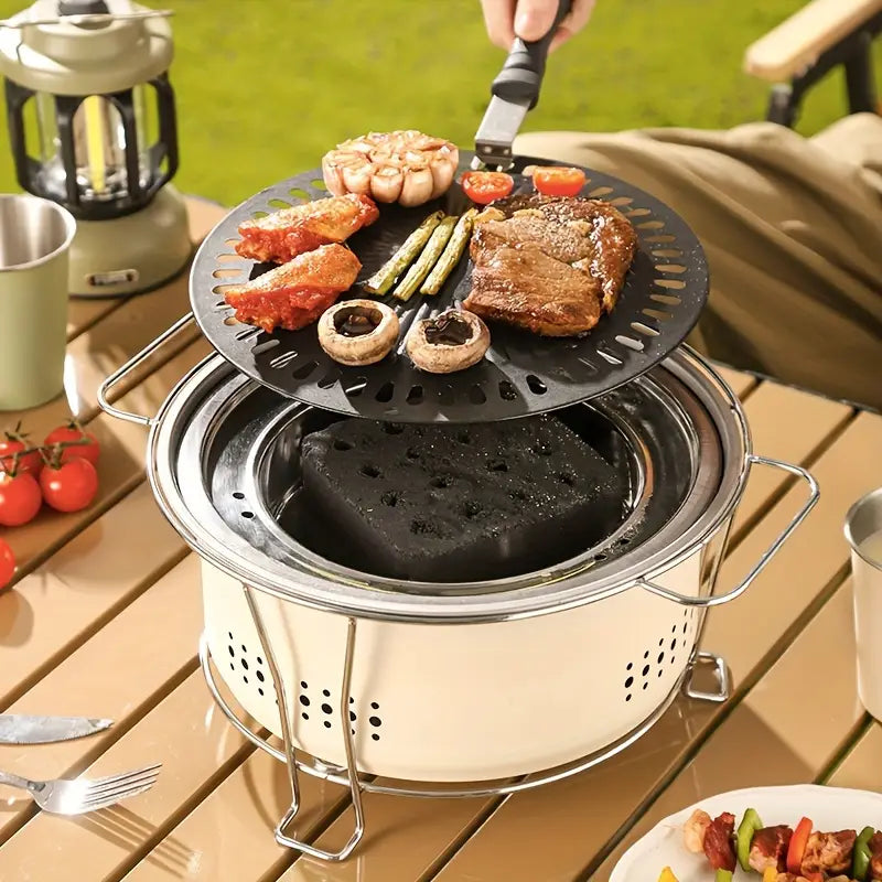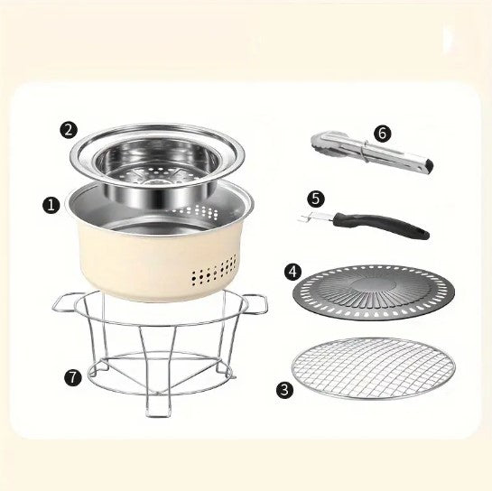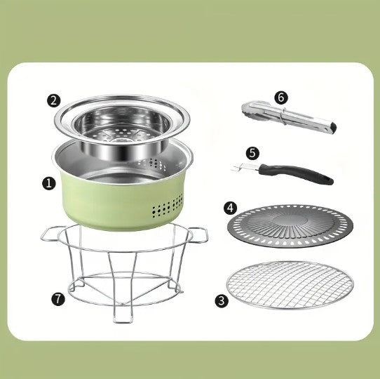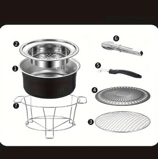 Transformez chaque repas en moment convivial avec ce barbecue portable en acier inoxydable. Véritable barbecue de table, il combine grill traditionnel, plaque rainurée type barbecue coréen et cuisson vapeur/bouillon pour une expérience complète, à la maison comme en plein air.