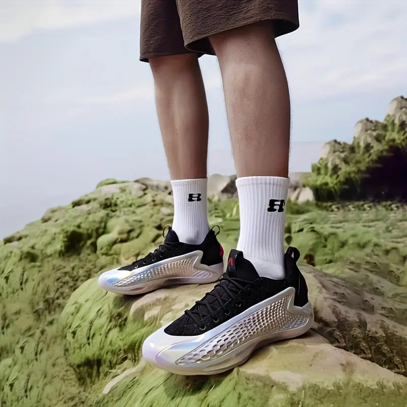 Faites passer votre routine en mode futur avec des baskets de sport homme qui mixent style streetwear et performance. La tige en mesh respirant épouse le pied, tandis qu’une coque latérale alvéolée en TPU à effet holographique sécurise chaque mouvement. La semelle intermédiaire légère délivre un amorti souple du matin au soir. Enfilage rapide via la languette au talon et ajustement précis grâce aux lacets: un allié polyvalent pour la ville, la salle et le plein air.