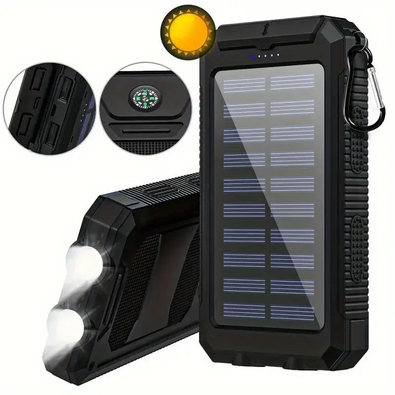 Batterie Externe Solaire 20000mAh – Power Bank avec Lampe Torche LED et Boussole pour Camping et Randonnée