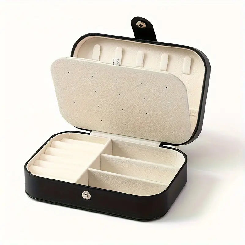 Boîte à bijoux de voyage en cuir noir – Rangement compact pour bagues, colliers et boucles d’oreilles