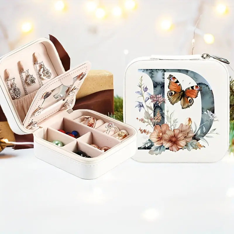 Protégez et sublimez vos trésors avec cette boîte à bijoux de voyage au design raffiné. Son extérieur en simili cuir est orné d’une initiale botanique et d’un papillon délicat pour une touche ultra-féminine et personnalisée. À l’intérieur, un velours doux préserve vos pièces des rayures, tandis qu’une fermeture zippée sécurise l’ensemble. L’alliée idéale pour un rangement bijoux chic au quotidien comme en déplacement.