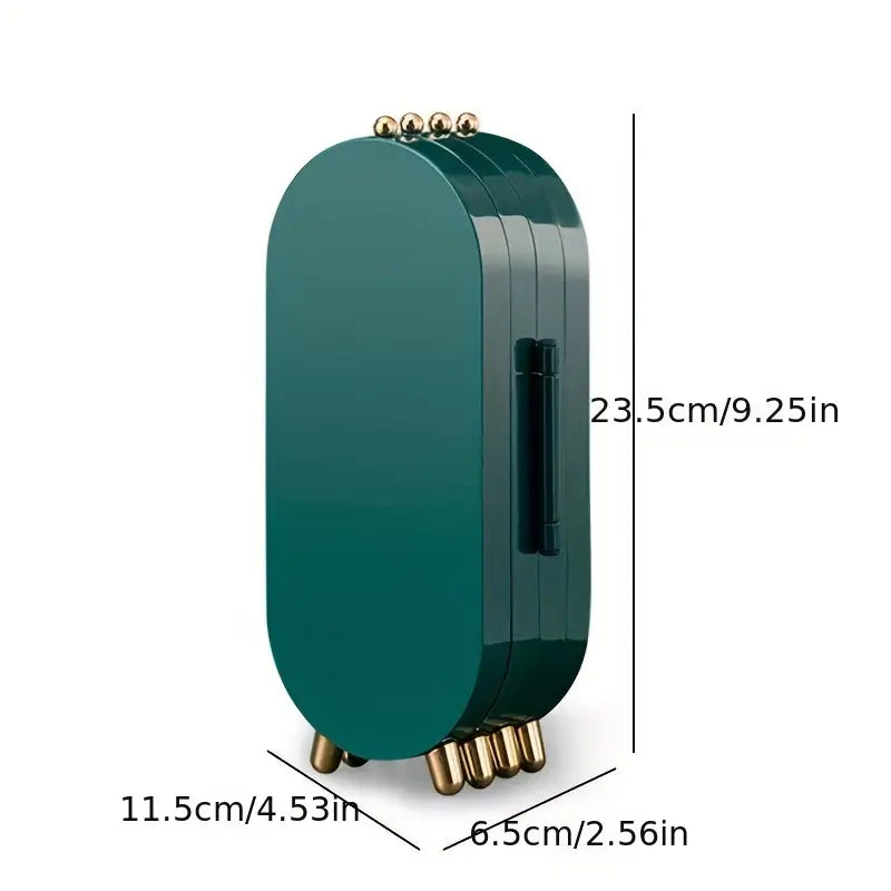 Boîte à bijoux design vertical en vert émeraude – Organisateur rotatif moderne avec pieds dorés