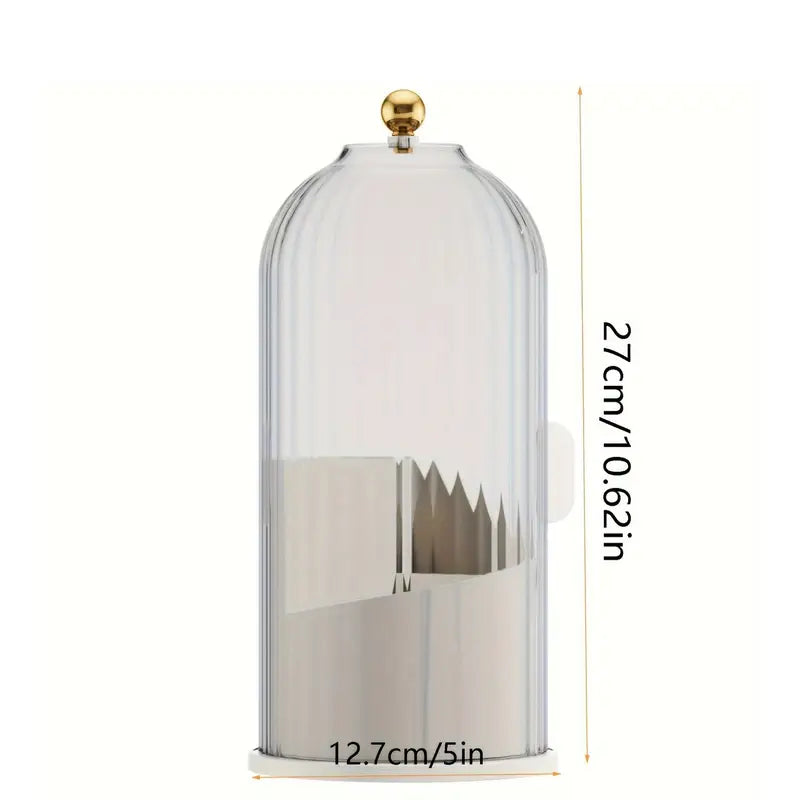 Placez vos essentiels par hauteur, refermez après chaque utilisation et nettoyez régulièrement la base et l’intérieur de la cloche avec un chiffon doux légèrement humide. Inclus: 1 organiseur avec cloche. Non inclus: pinceaux et cosmétiques.