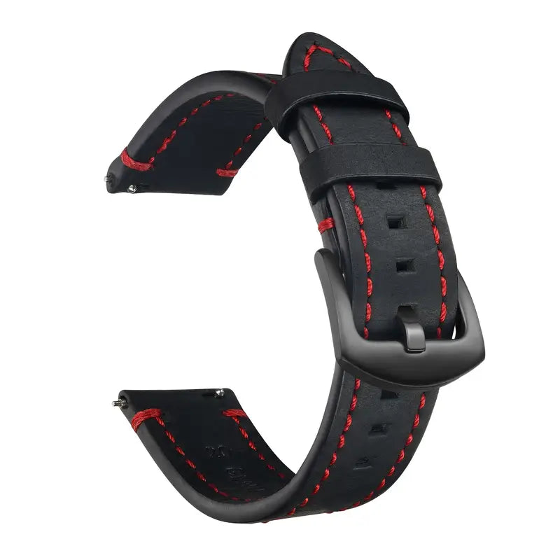 Bracelet de montre en cuir noir avec surpiqûres blanches – Accessoire élégant et résistant pour montre homme et femme