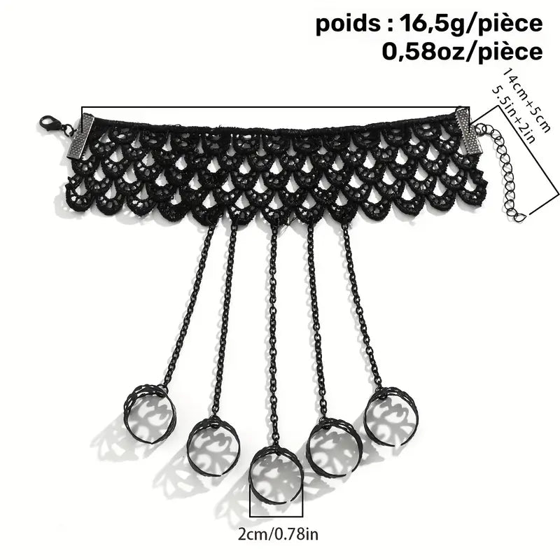 Bracelet gothique dentelle noire avec chaînes – Accessoire de costume élégant et mystérieux pour femme