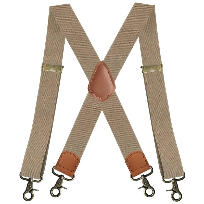 Bretelles homme style rétro – Bretelles réglables en tissu élastique avec finitions cuir marron et crochets métal