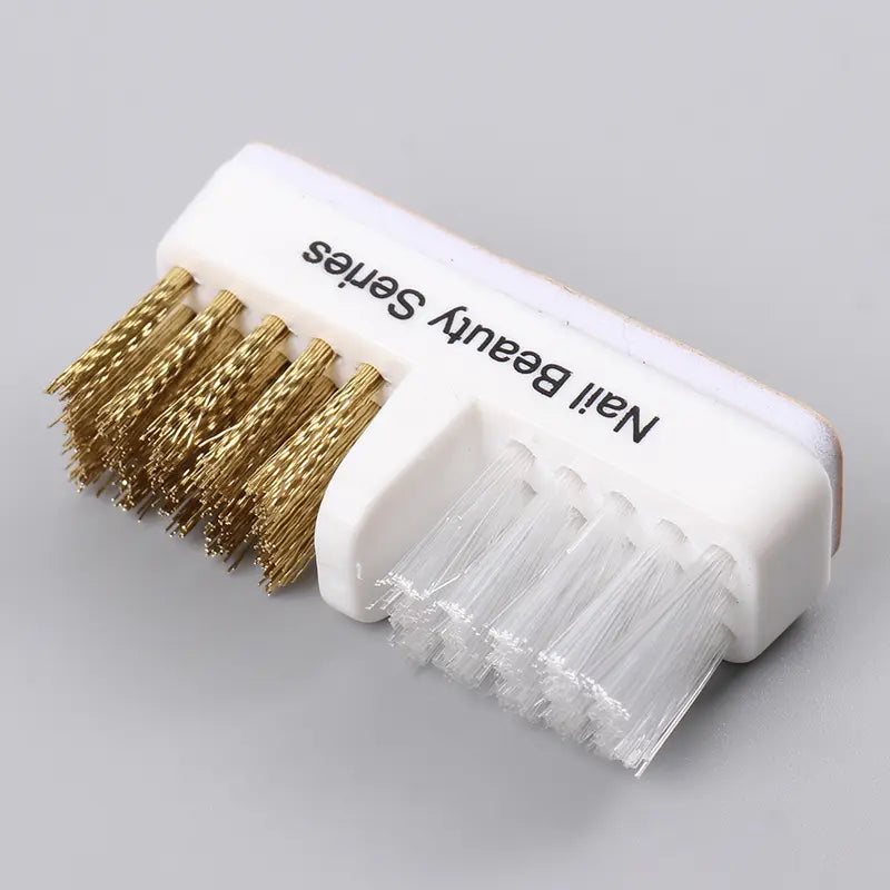 Brosse de Nettoyage à Double Face – Poils Métalliques et Nylon pour Outils de Manucure et Embouts de Ponçage