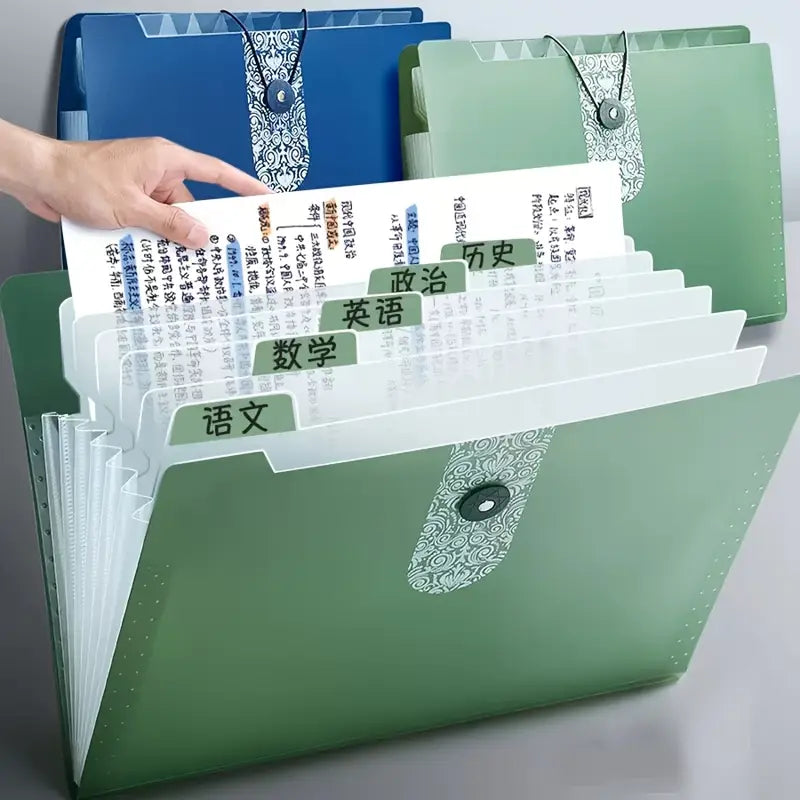 Optimisez votre organisation au quotidien avec cette pochette accordéon A4 conçue pour un classement clair et rapide. Ses soufflets offrent plusieurs compartiments visibles en haut pour trier factures, cours, contrats et dossiers en un clin d’œil. La fermeture par bouton et cordon maintient vos documents en place pour une sécurité totale en mobilité, évitant toute ouverture accidentelle.
