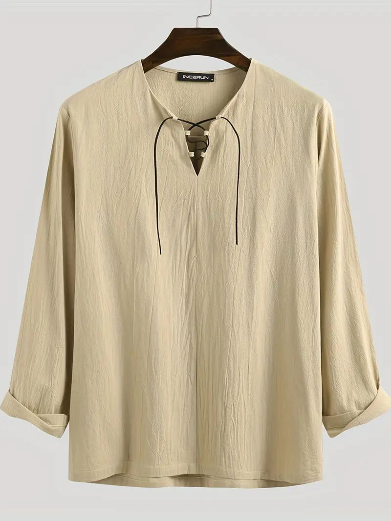 Chemise fantaisie homme en lin à col lacé – style bohème et médiéval