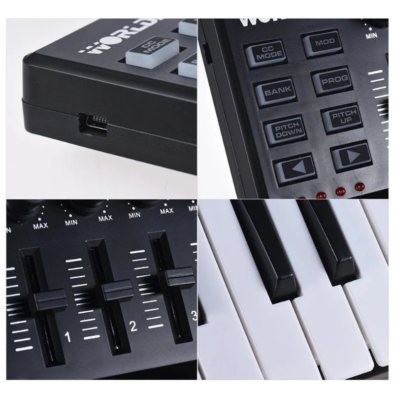 Découvrez un clavier MIDI 25 touches ultra‑compact pensé pour la production musicale nomade. Branché en USB plug‑and‑play, ce contrôleur MIDI regroupe l’essentiel: 8 pads lumineux pour le beatmaking, 4 faders et 4 potentiomètres assignables pour sculpter vos sons en temps réel. Compatible Ableton Live, FL Studio, Logic Pro et GarageBand, il offre un jeu fluide et un workflow rapide partout.