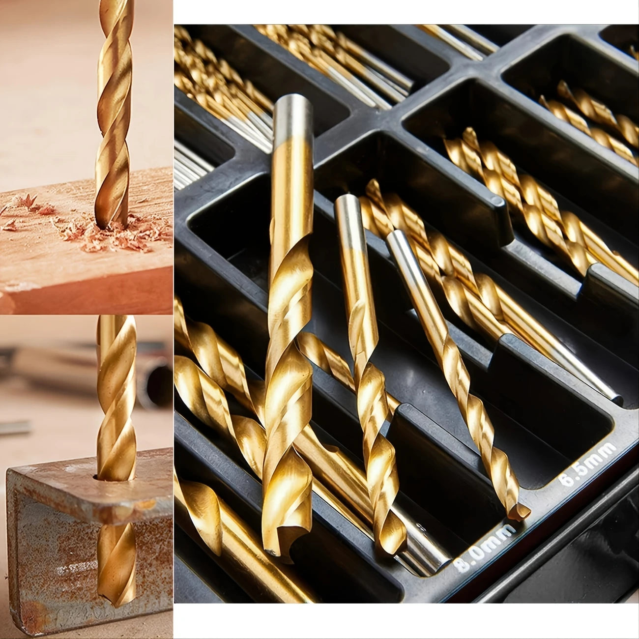 Boostez vos projets avec un coffret de forets HSS revêtus TiN conçu pour un perçage propre et précis dans le métal, le bois et le plastique. La pointe 135° auto-centreuse démarre sans déraper, tandis que la géométrie hélicoïdale assure une évacuation rapide des copeaux et des bords nets. Idéal pour bricoleurs exigeants et professionnels.