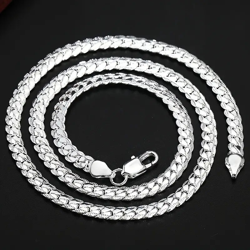Ce collier homme en acier inoxydable adopte une chaîne plate type gourmette aux maillons biseautés, polis pour un effet miroir éclatant. Minimaliste et affirmé, il met en valeur le cou avec une ligne nette qui tombe parfaitement à plat. Portez-le seul pour un look épuré ou en layering avec d’autres chaînes pour un style contemporain.