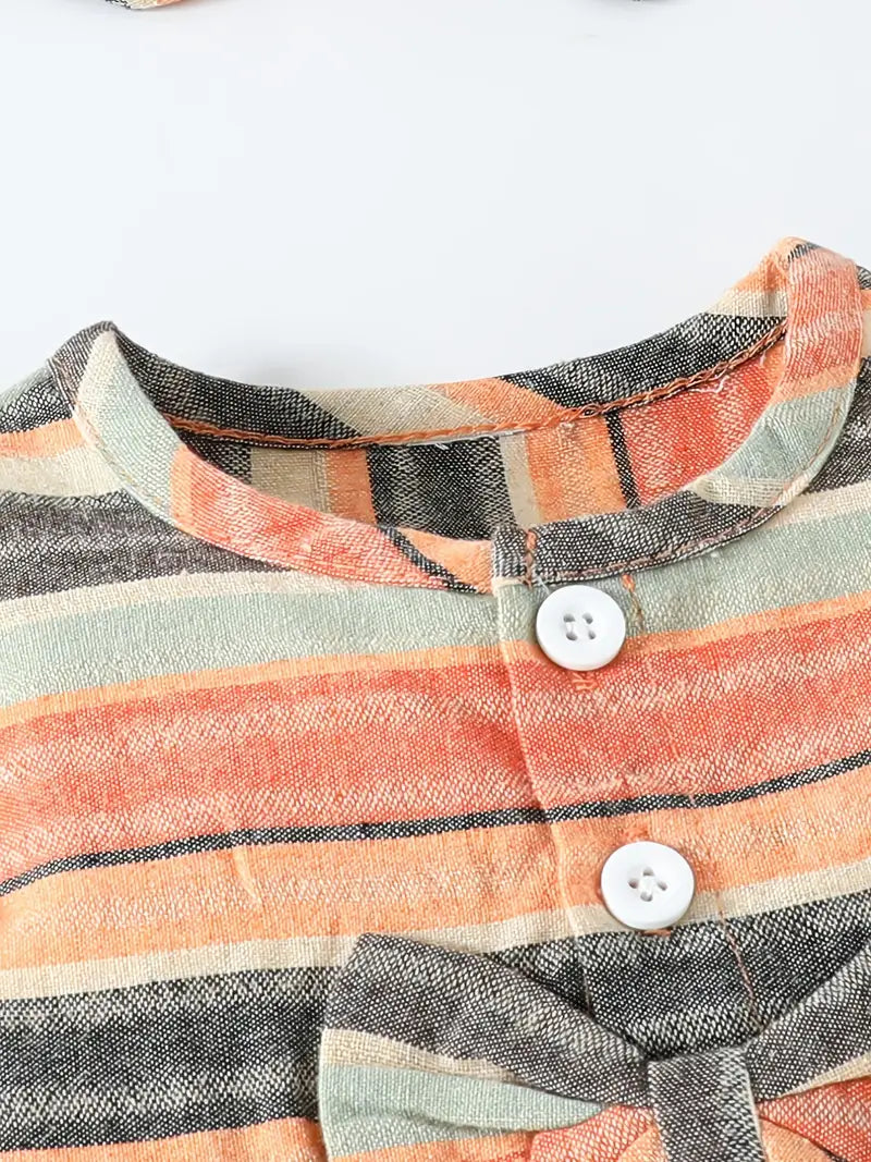 Combinaison bébé fille à rayures – Cadeau naissance avec nœud et bandeau assorti