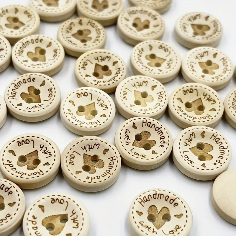 boutons “handmade with love” en bois – lot mixte 15/20/25 mm