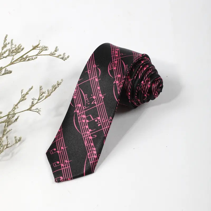 Cravate noire homme à motifs notes de musique roses – Accessoire élégant pour musiciens et soirées habillées