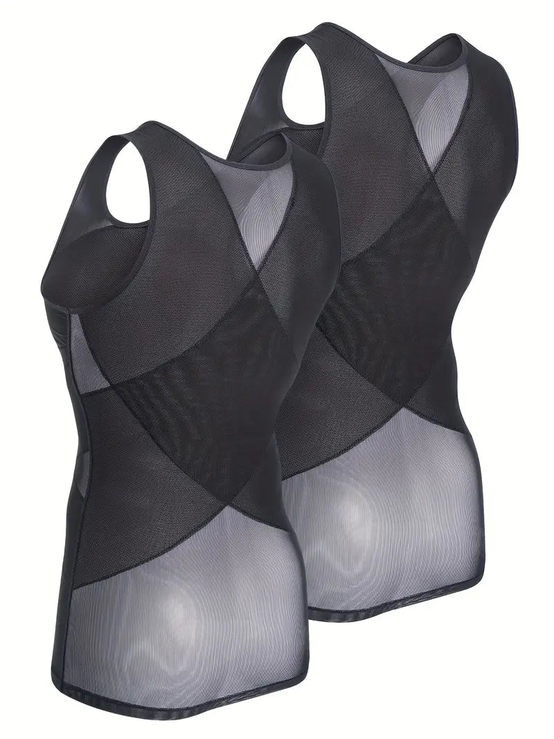 Sculptez votre silhouette en un instant grâce à ce débardeur gainant homme. Sa microfibre douce et extensible 4 directions associe des zones de compression à compression ciblée (motif croisé) et des panneaux mesh respirants pour lisser le buste, obtenir un ventre plat et un dos redressé tout au long de la journée. Effet seconde peau, invisible sous les vêtements grâce aux coutures plates et à la finition clean. Col rond, bretelles larges et longueur hanche pour un maintien discret qui ne marque pas.