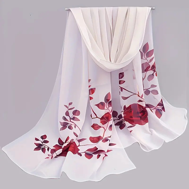 Écharpe femme blanche à fleurs grises – Châle léger en mousseline élégant et raffiné