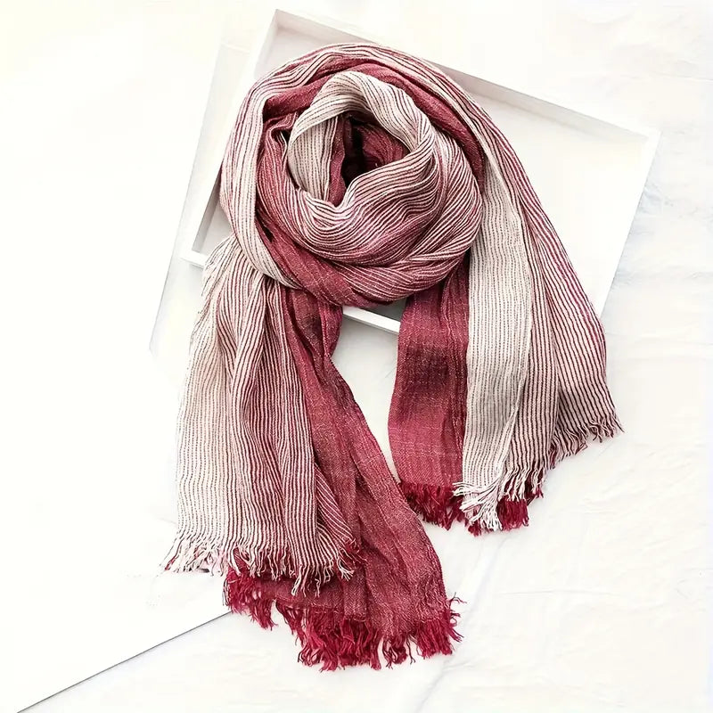 Écharpe homme à rayures bordeaux et beige – Foulard léger à franges pour style élégant et décontracté