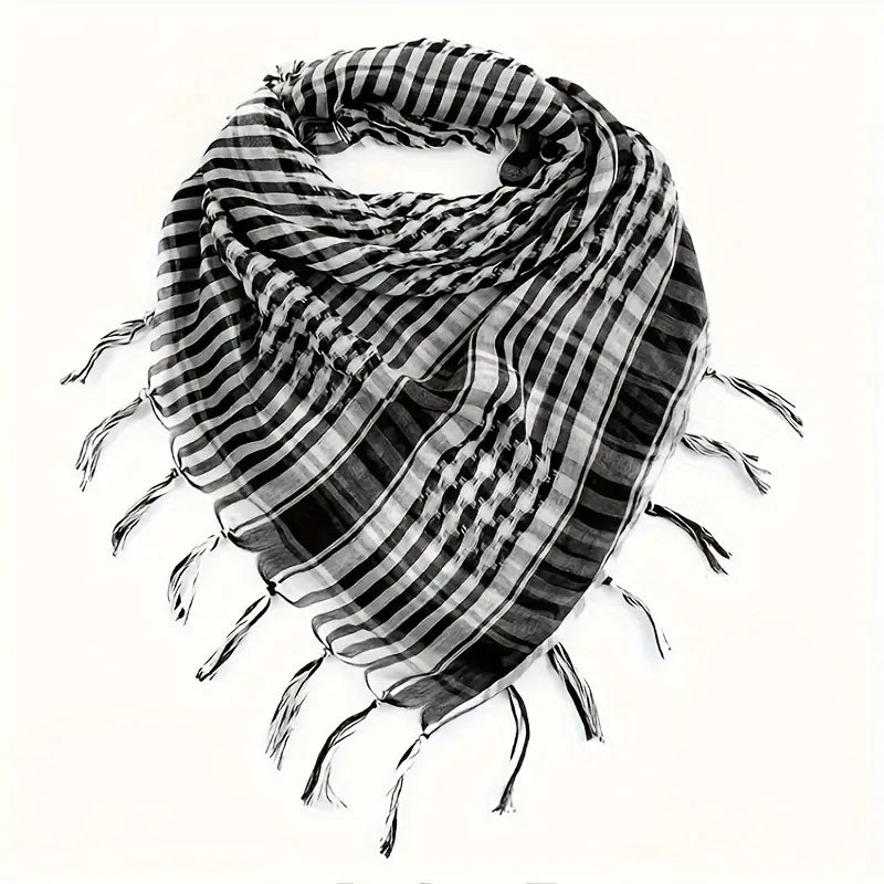 Écharpe keffieh homme noir et blanc – Chèche léger à franges pour style moderne et décontracté