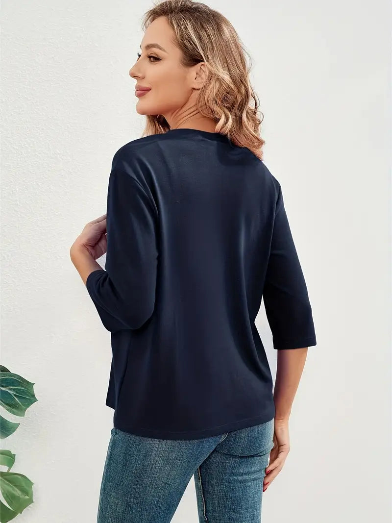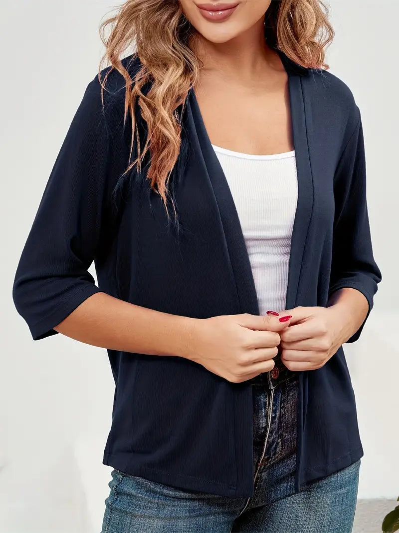 Adoptez l’allure effortless d’un cardigan basique qui sublime chaque tenue. Sa coupe fluide et l’ouverture sans boutons créent une ligne verticale qui élance la silhouette. Les manches 3/4 apportent une touche moderne et pratique, idéale en mi-saison ou en intérieur. Confectionné dans une maille douce et légèrement extensible à l’aspect finement côtelé, il se superpose sans alourdir un débardeur, un top ou une robe, du bureau au week-end.