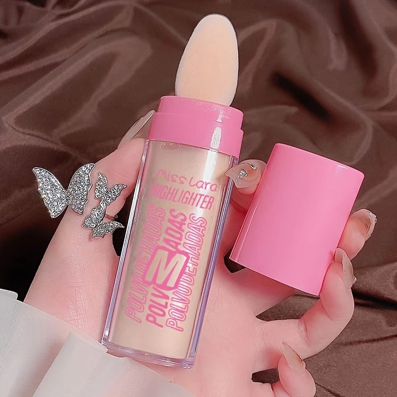 Enlumineur Liquide avec Applicateur Éponge – Highlighter 3 Teintes pour Visage, Lèvres et Cheveux