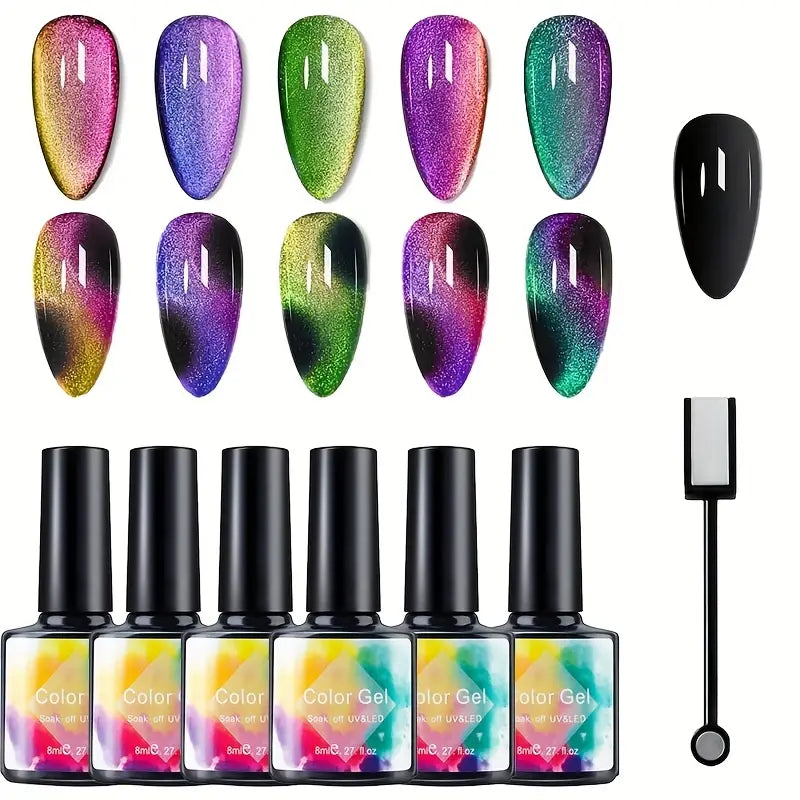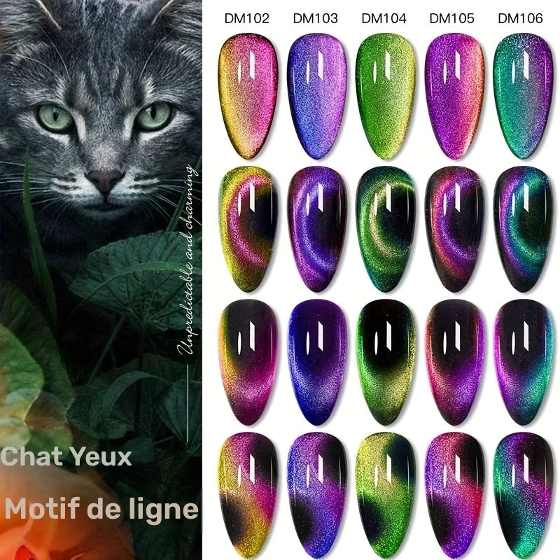 Ensemble 6 Vernis Gel Cat Eye Magnétique – Effet Œil de Chat 9D Holographique UV/LED, 8ml + Aimant Inclus