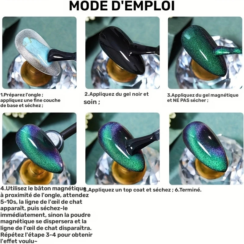 L’aimant rapproche les reflets pour un rendu profond et net, sans effort. La texture fluide du gel magnétique assure une application homogène et un contrôle précis des effets.