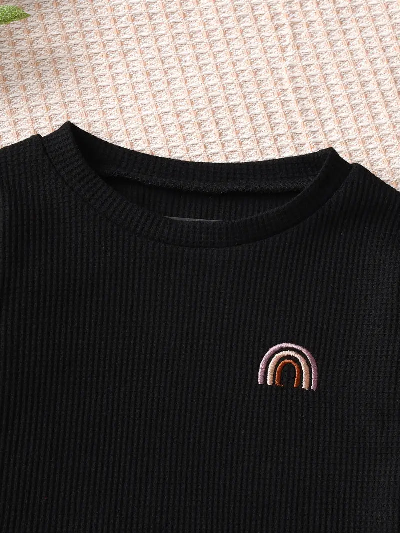 Coupe confortable compatible couche, finitions soignées et petit motif discret sur la poitrine: cet vêtement confortable bébé offre un look minimaliste enfant facile à assortir et toujours chic.